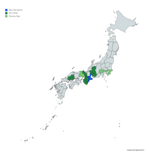 Looking forward at this month, I want to continue my plan of visiting at least 1 new prefecture every month, but I’m starting to run out of places I can go to in a day trip, so I’ll have to start doing more planning, as I’ll need accommodations if I’m going far. However, this will also mean I get to fill in more of the map, since if I’m going far and staying in a hotel, I’ll probably be able to visit several places in one trip. I’m looking at Shikoku as a possibility for December, but I still haven’t decided.