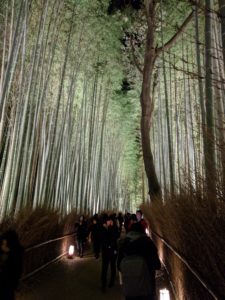 It’s that time of year again in Japan where the temperature has dropped, the days are short, and the beautiful lighting displays are plentiful. I decided to go to Arashiyama once again this year, since I enjoyed the last time I had a chance, which was December 2015. Arashiyama is a mountain in Kyoto that is famous for its beautiful scenery, including the mountain, a bridge, and the bamboo forest, as well as a monkey zoo, which I still haven’t been to. As they only run the light up of the forest and mountain for 10 days, I figured I had better jump on the chance, so I went with my friend Kyo.