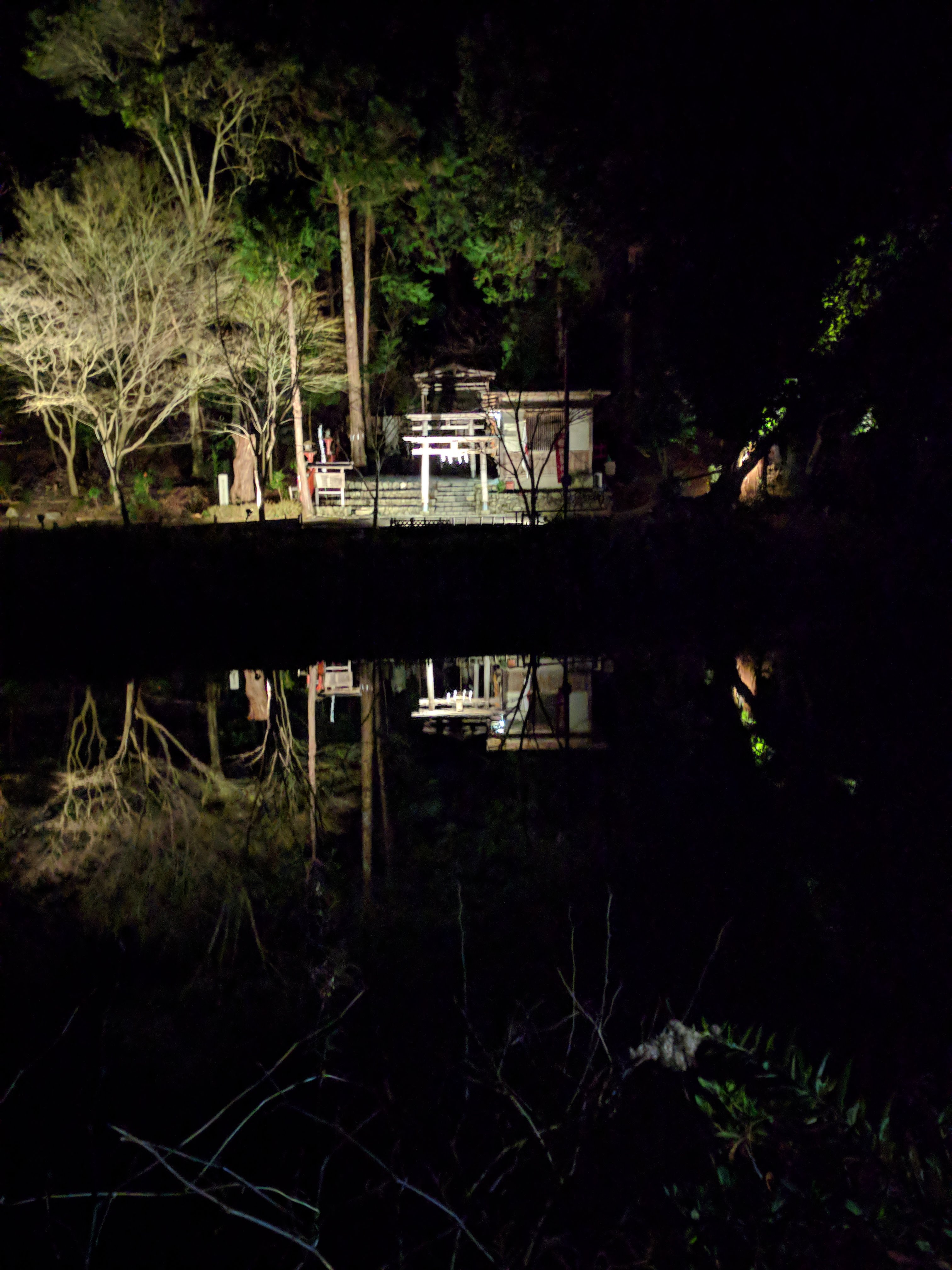Very still water makes for neat reflections at nighttime